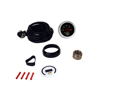 AEM wideband UEGO air/fuel ratio gauge kits unite unsurpassed accuracy, speed and control with an easy to read, digital interface. They are able to be used with virtually any engine management system, such as the AEM EMS or FIC. The kits feature a Bosch sensor with an accuracy of .1 AFR, making it among the fastest and most accurate widebands available. AEM Electronics digital wideband air/fuel UEGO kits' bright LED display shows A/F ratio in .1 increments, and the sweeping LED "needle" lines the edge and changes color as air/fuel ratio changes from rich to lean. The digital UEGO's come with both silver and black bezels and white and black faceplates that are easily interchangeable.